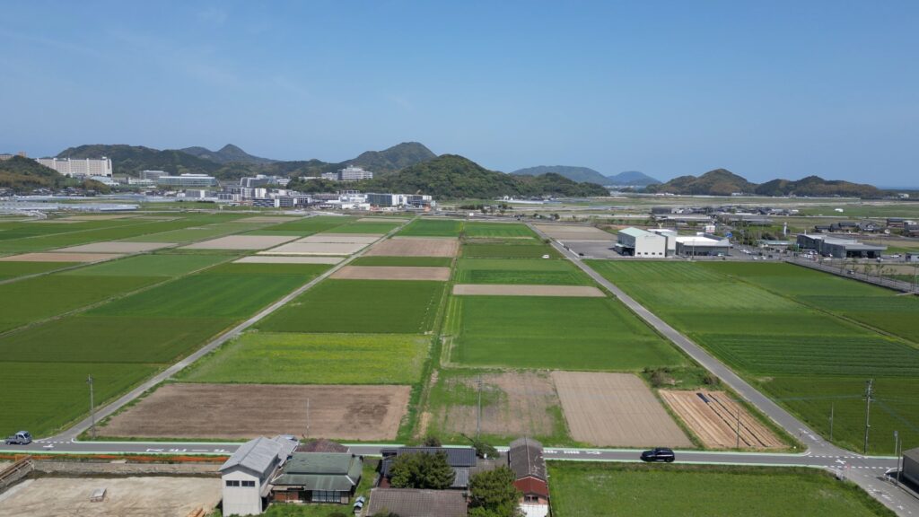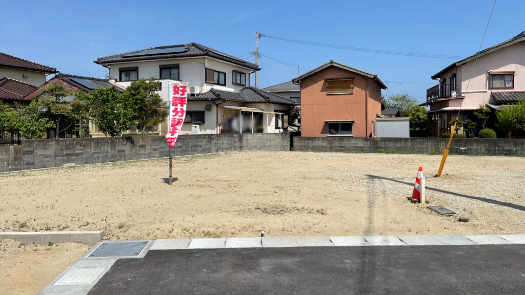 その田園風景と住宅地との境目付近にできた新規分譲地は、都会の利便性と田舎の雰囲気が共存する素敵な地域です。